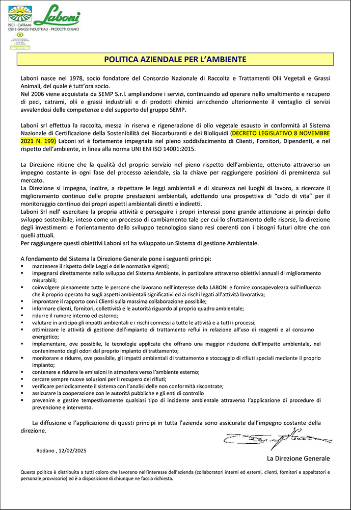 Politica Aziendale per l'Ambiente
